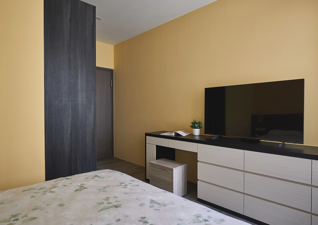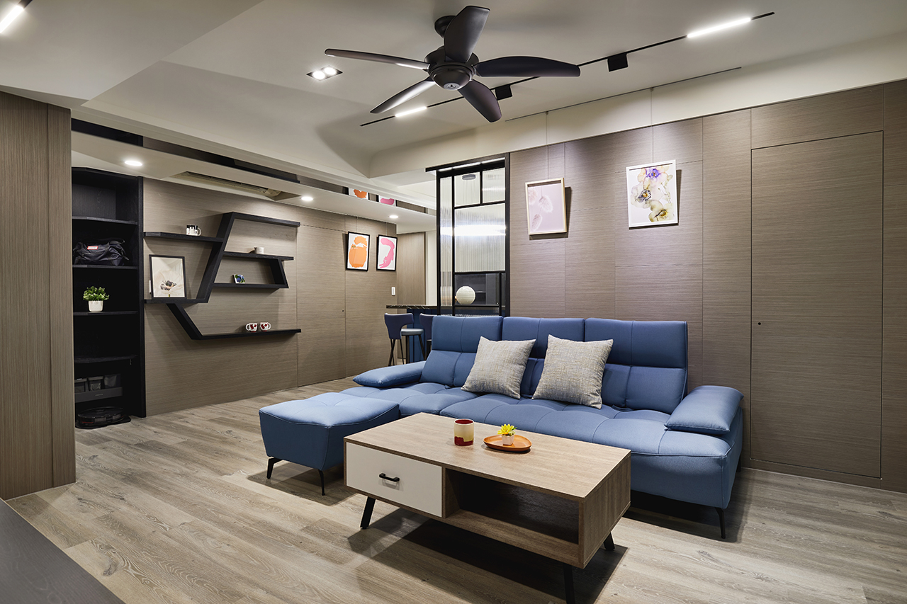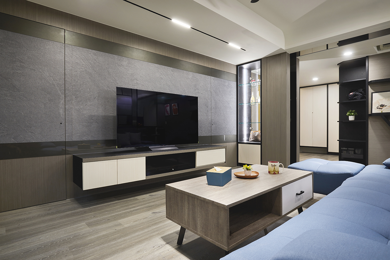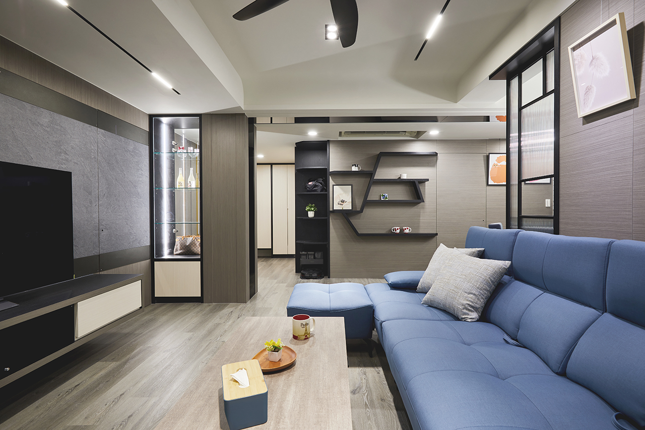 面對住家的風格塑造,登豐設計的思考方向則另闢蹊徑,既要注重實際機能,卻又不能流失藝術美學,透過將直線、方形及矩形等幾何形狀當成設計主軸,在簡約現代氣息當中結合低彩度及中度飽和色調,一舉創造出穩重而溫馨的氛圍,表現出極具個性的迷人魅力。