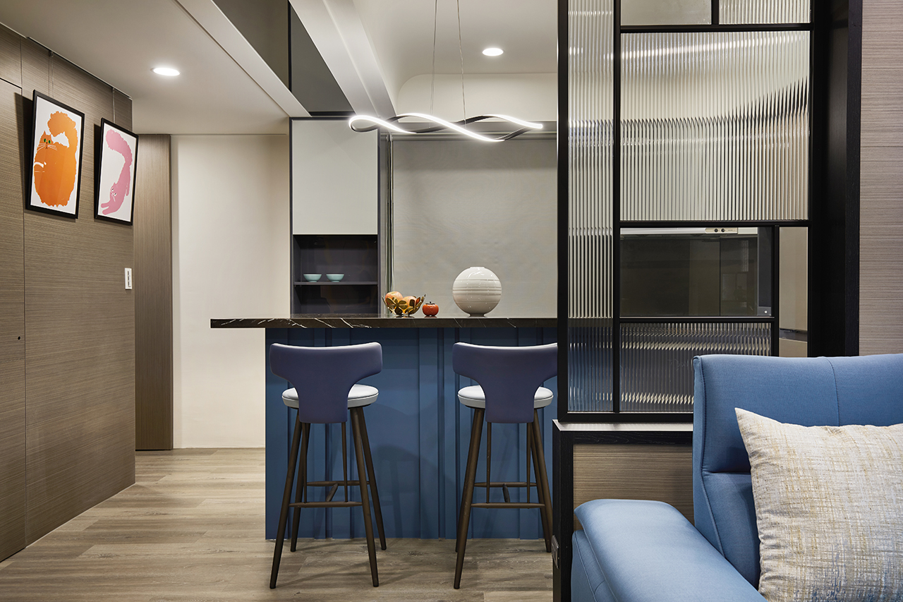 另一方面,針對本案擁有三面採光的優勢,特意使用調光簾及百葉簾,精準掌控光線投射強弱,且室內溫度不會過高,充分達到降低電器設備依賴的目標,輔以LED燈具與磁吸軌道燈,令光源能隨意移位,無形中讓照明功能更加變化多端。考慮到屋主的工作狀況,本案的存在提供他一個能夠與家人共同享受寧靜時光的愜意環境,即使面對外在各種壓力,依然能獲得滿滿能量,無懼挑戰,勇敢前行。